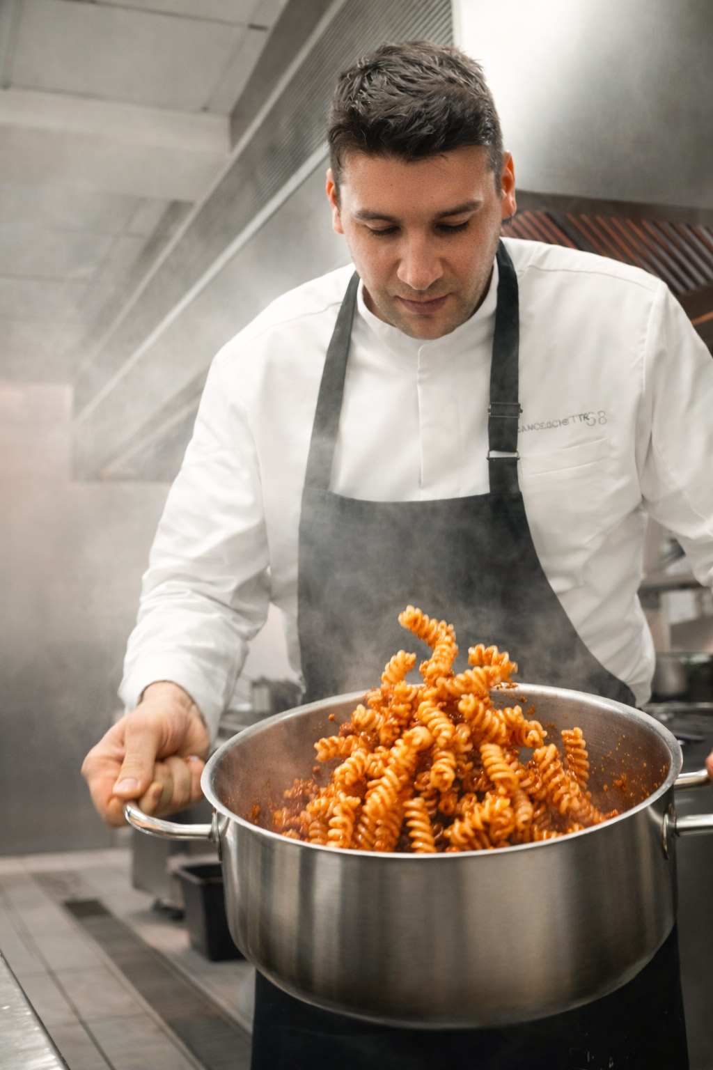 Over time, his curiosity led him into the kitchen, where he spent more than seven years — first at the three-Michelin-star restaurant and then, from 2017, as Head Chef of Franceschetta58. During these years, he built authentic relationships with local producers and artisans, gaining a deep knowledge of Emilia’s ingredients. In constant dialogue with Massimo, he creates seasonal menus that reinterpret local traditions through a contemporary lens, also shaped by his travels around the world.